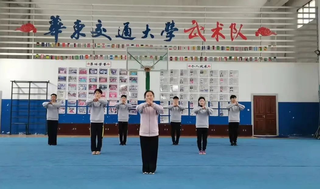 上一期校武术队符木红老师讲解示范了《奋进 华东交大》武术健身操的第一节和第二节。本期校武术队师生将带领大家继续学习武术健身操。