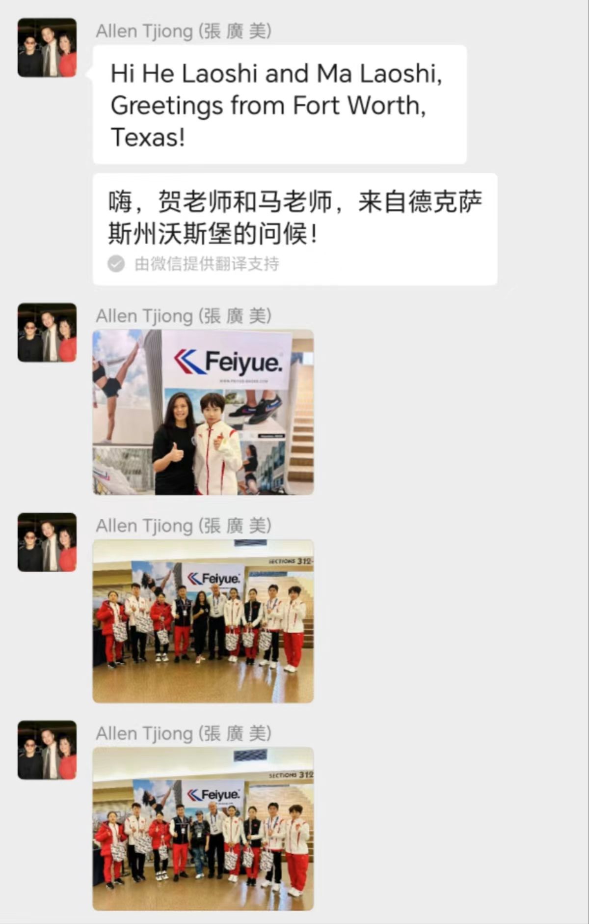 11月,第十六届世界武术锦标赛在美国得克萨斯州沃斯堡举行。我校体育投注 2021级体育教育专业学生刘鑫前往比赛。期间,美国罗格斯大学武术训练中心主任张爱宁前往赛场看望,并积极展开友好交流,庆祝刘鑫夺得女子刀术冠军的成绩。