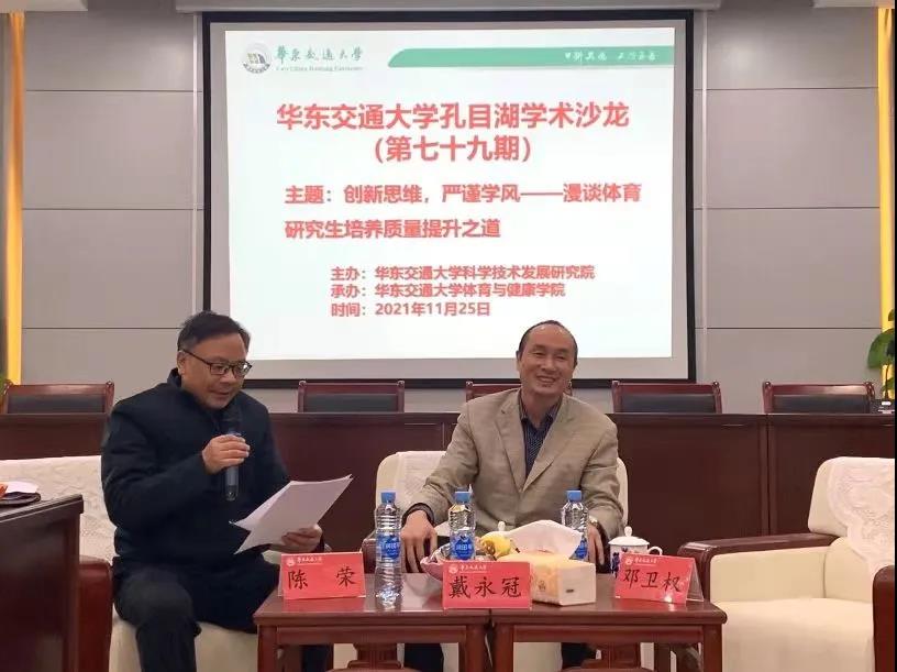 会议室)顺利举行。本次沙龙特邀江西师范大学博士生导师戴永冠教授为主讲嘉宾。本次学术沙龙主题为“创新思维,严谨学风——漫谈体育研究生培养质量提升之道”,戴永冠教授报告题目为《高质量发展目标的体育研究生培养》。部分硕士生导师、研究生参加此次学术沙龙,报告由学院副院长陈荣教授主持。